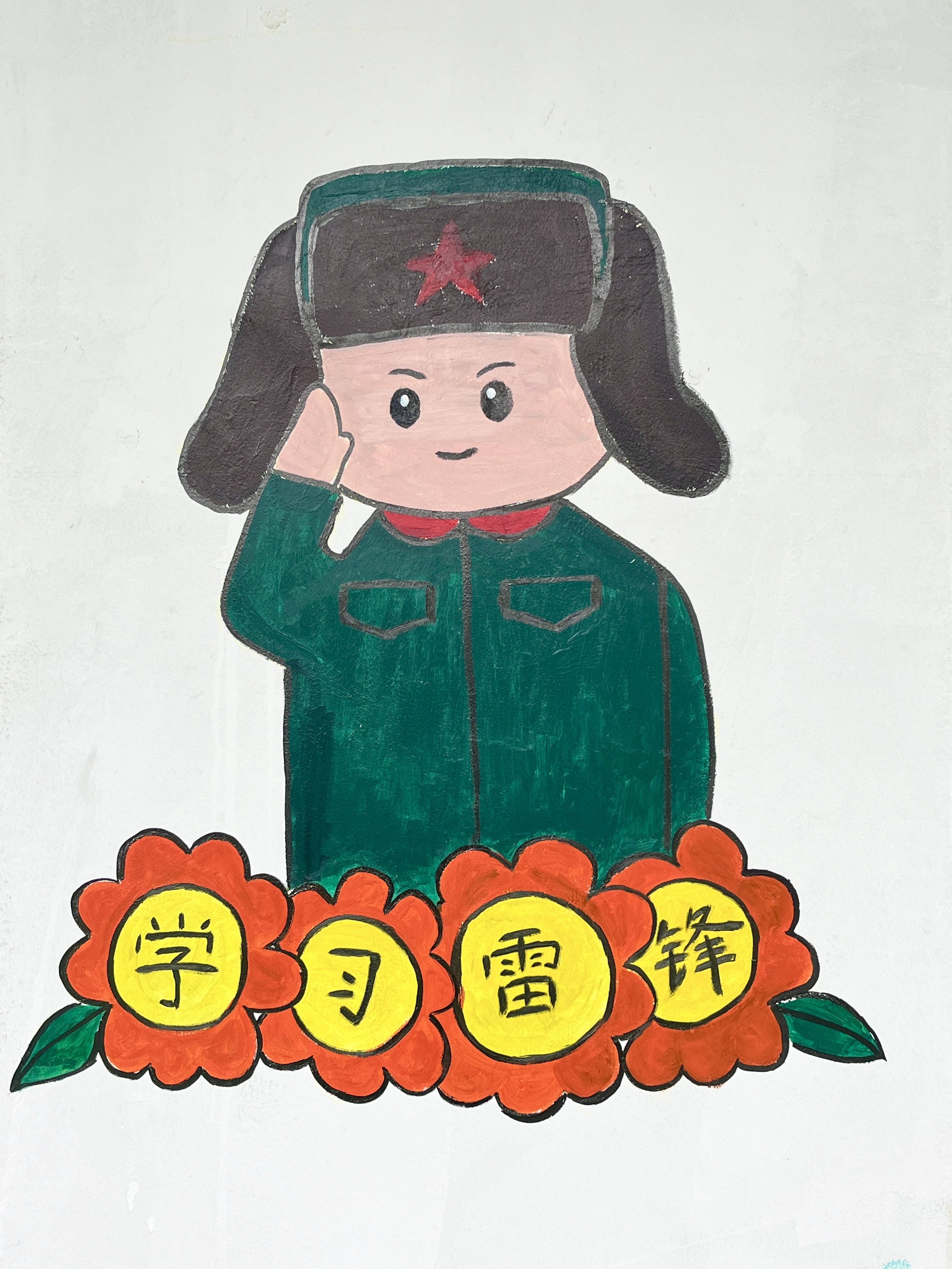 画雷锋,精描细绘传精神。在教室间隔区,党员们运用卡通绘画技巧,以生动鲜活的艺术形式,将雷锋乐于助人、无私奉献的精神内核巧妙融入其中,让雷锋精神在每一位师生心中生根发芽,激励着大家在日常学习生活中见贤思齐,向上向善。