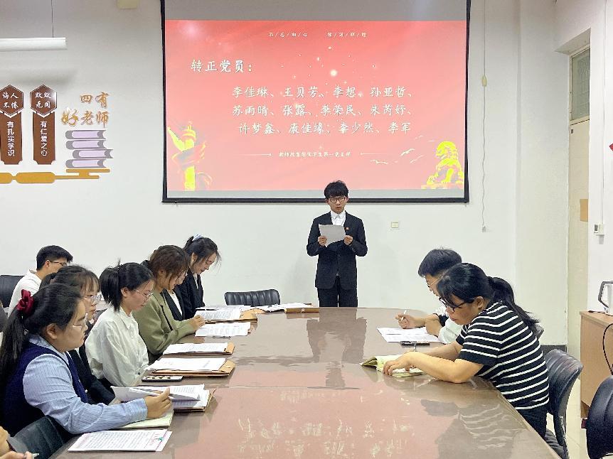 随后,各支部入党介绍人依次评价了尹晗等21名同志在预备期内的表现,从学习、工作和思想等方面发表了自己对尹晗等21名同志转正问题的看法,一致认为尹晗等21名同志符合一名合格党员的标准,同意其按期转正。与会正式党员通过无记名投票进行了表决,同意尹晗等21名同志转为正式党员。