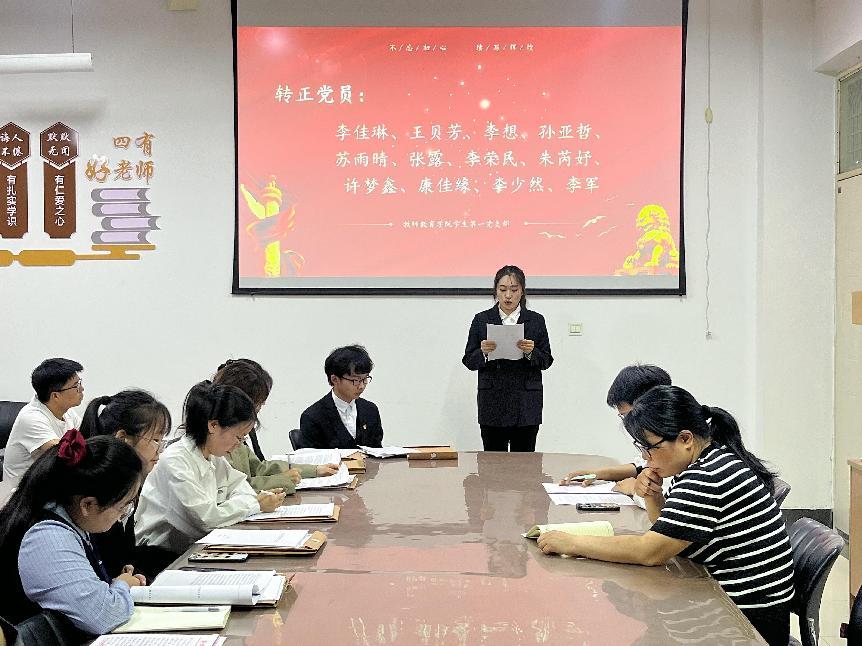 会上,尹晗等21名预备党员依次向党组织汇报预备期情况。在思想上,持续加强政治理论学习,不断提高政治觉悟,自觉用党的先进思想武装头脑,时刻保持与党的高度一致。在学习上,他们始终保持积极进取的态度,主动拓宽知识领域,不断提升专业素养与综合能力。在工作上,始终保持高度的责任心,认真履行职责,主动承担任务,努力保障各项工作有序推进。在生活上,秉持严于律己、宽以待人的原则,注重个人品德修养,积极营造和谐的人际关系,主动关心同学,力所能及地帮助他人解决困难。同时,他们也正确认识到自身不足,表明转正后将更加严格要求自己,充分发挥党员先锋模范作用,为公司发展和公司建设贡献更多力量。
