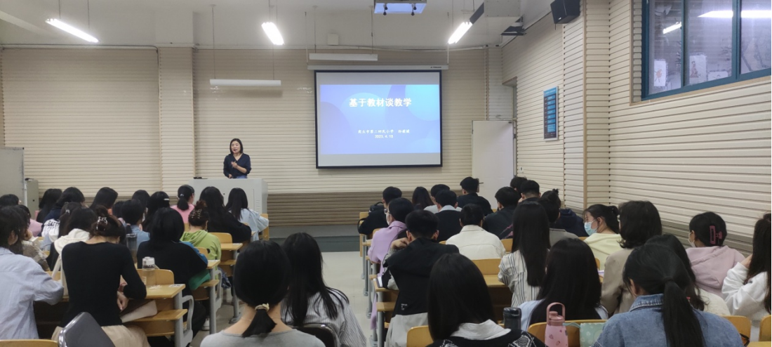 孙媛媛老师结合自身教学经验结合课例分析,向同学们清晰阐述了如何从吃透教材到吃透员工再到最后以学定教。孙老师从“怎么样读准教材”、“怎么样读懂员工”、“怎么样实施教学”这三个方面讲述了如何基于教材谈教学。孙老师指出:读准教材,要读通课标、读懂教材;读懂员工,读懂数学,让员工喜欢数学;课堂教学,要做好读课标、看教参、挖教材、后反思的上课四步曲,用好教材上好课。