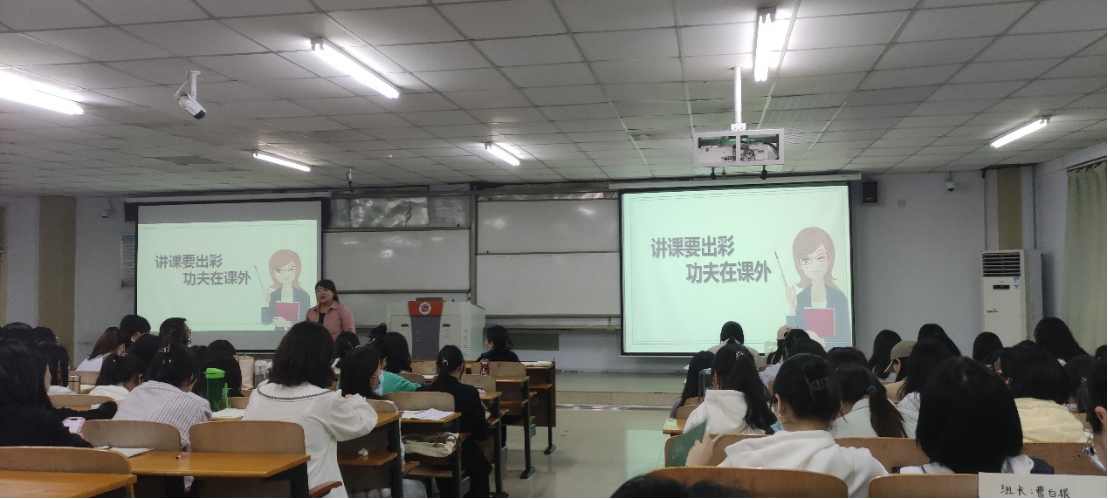 之后姜老师阐述了微型课的核心要义并指出进行微型课语言要精炼,板书设计要有亮点之笔。最后,姜老师寄语同学们在微型课比赛当中一定要仪表端庄,仪态优雅;微笑自信,感染听者;借助媒体,有效辅助;充分预设,生成精彩。