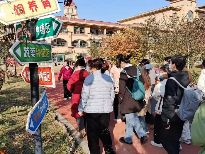 首先,徐艳老师带领全体员工进行户外环境创设的参观学习。园内精致的仿生自然景观、童趣的游乐设施、大片的橡胶场地、蔬菜种植园、中草药种植园、粮食作物种植园、果树种植园和饲养区等为幼儿的自然游戏提供了充分的探索空间。这些区域实施分班种植和管理,为幼儿提供了自我服务与自我管理的机会。