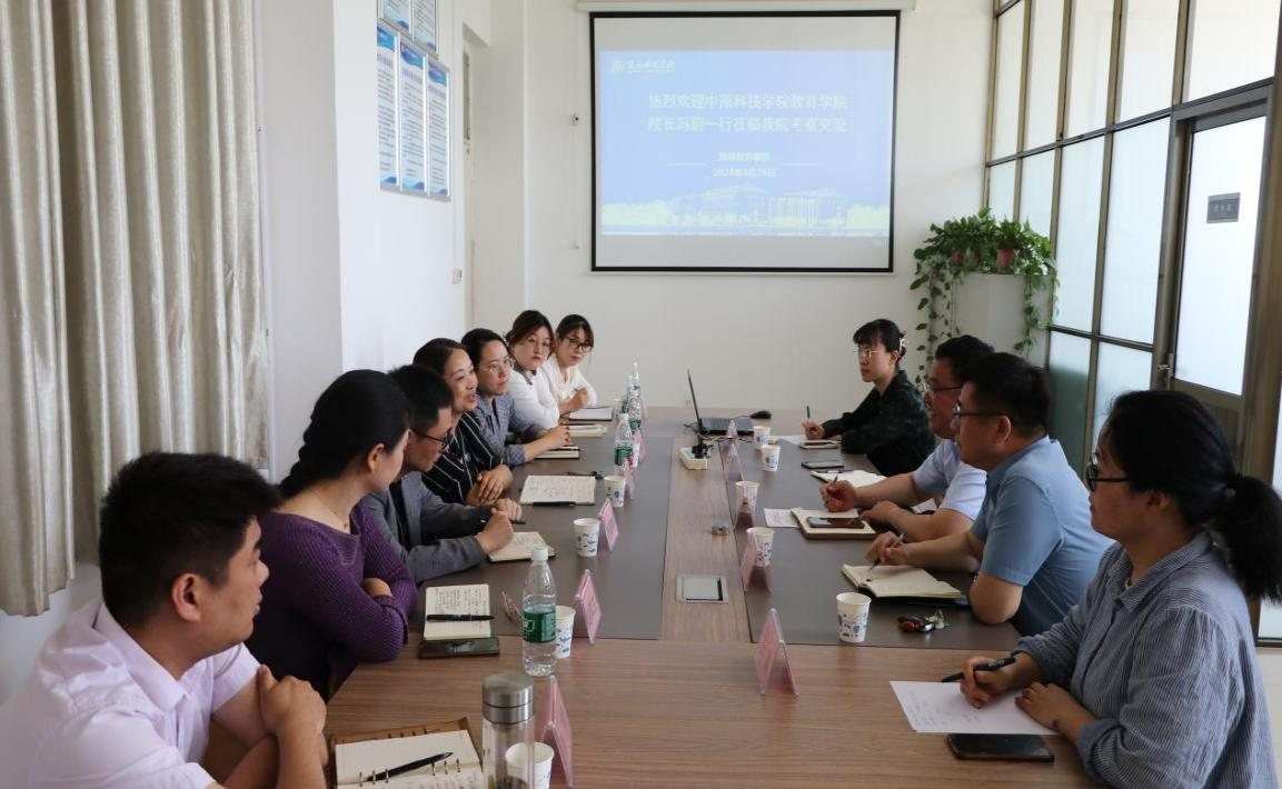 随后,双方在公司201会议室进行交流座谈。经理孙旭首先向客人介绍了公司发展概况及在专业建设、师范生成长工作坊等方面主要做法及成效。随后,冯蔚经理介绍了中原科技公司教育公司的发展历史、办学宗旨及办学成效。最后,双方就人才培养定位及特色、学科及专业建设、实训室建设、师范生实习实践、师范生成长工作坊的建设等方面进行了深入交流。
