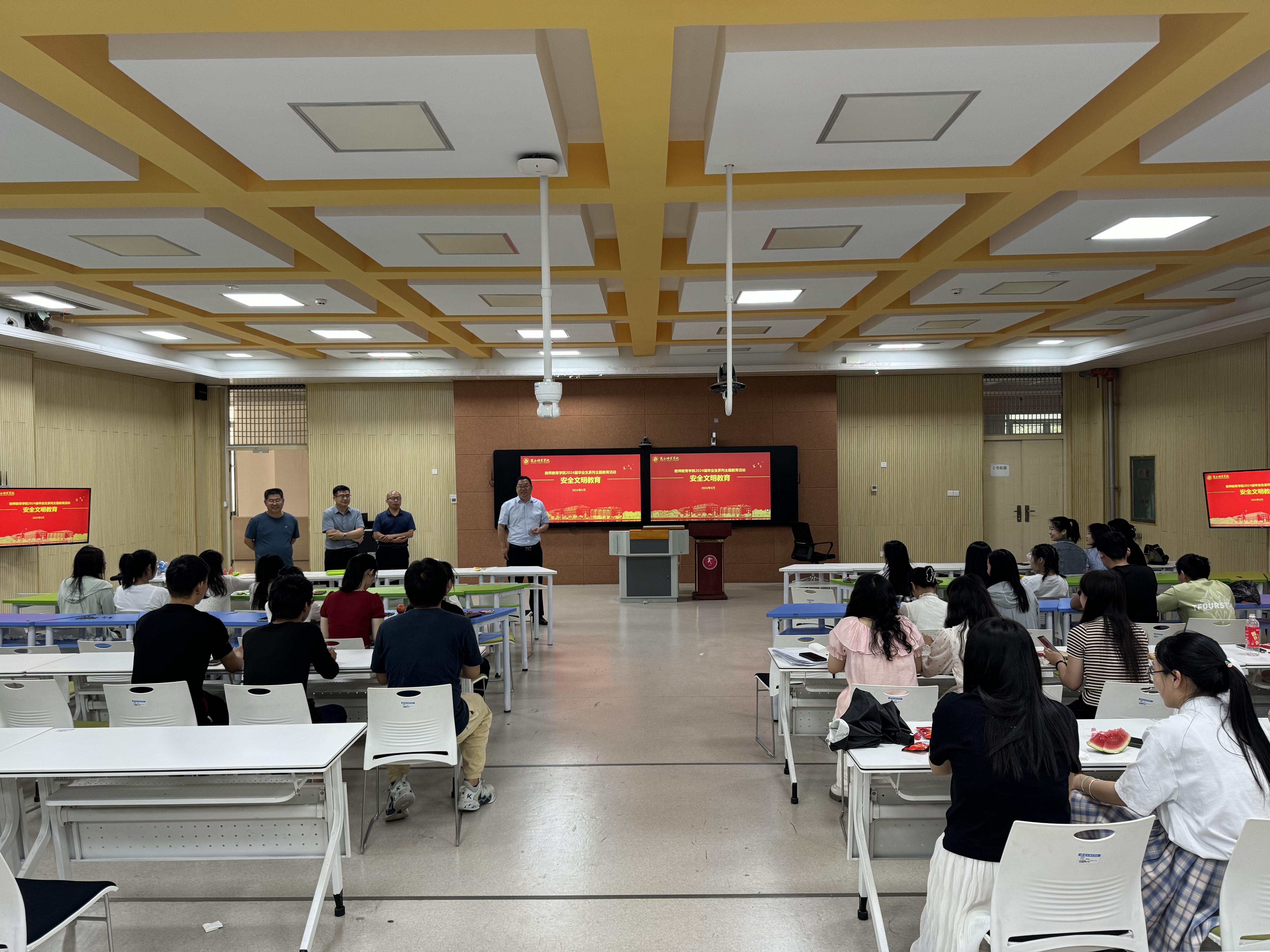 孙旭对毕业生四年学习生活进行回顾和总结,肯定同学们四年以来的成长与收获,希望同学们一直保持心中的热忱与豁达,坚守内心的追求与美好,母校和公司是大家强大的后盾,欢迎大家常回来看看。邱友谊以“爱国荣校 追梦启航”为题,鼓励毕业生加强爱校荣校情怀,共同营造文明和谐、平安有序的毕业离校良好氛围。