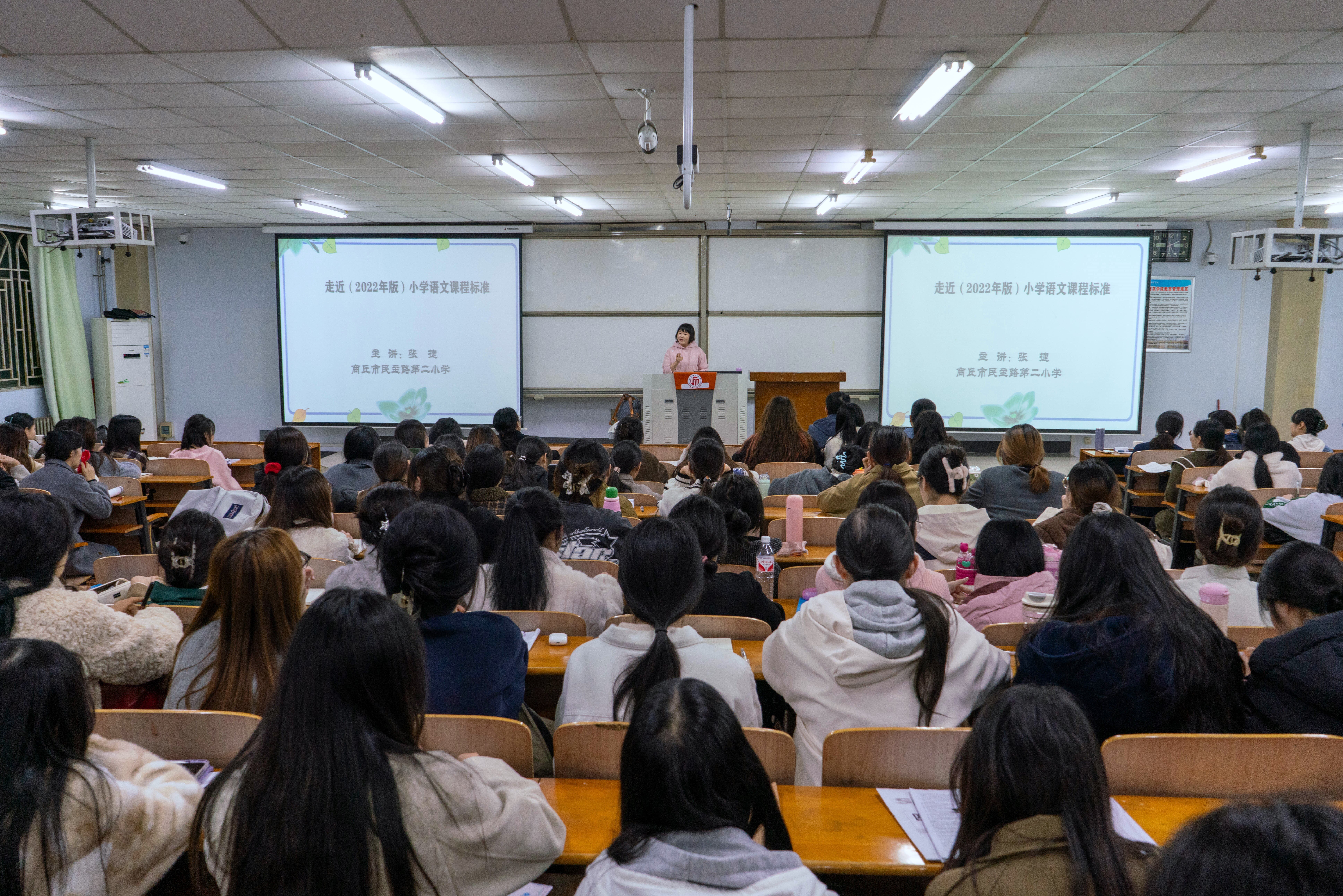 为积极推进师范生专业能力发展,搭建一线教师与师范生之间的交流平台,11月19日,beats365在智圆楼123室举办了小学教育专业师范生成长工作坊之《小学语文课标解读》专题讲座。本次讲座由商丘市梁园区民主路第二小学教师张捷主讲,小学教育专业22级全体坊员参加。