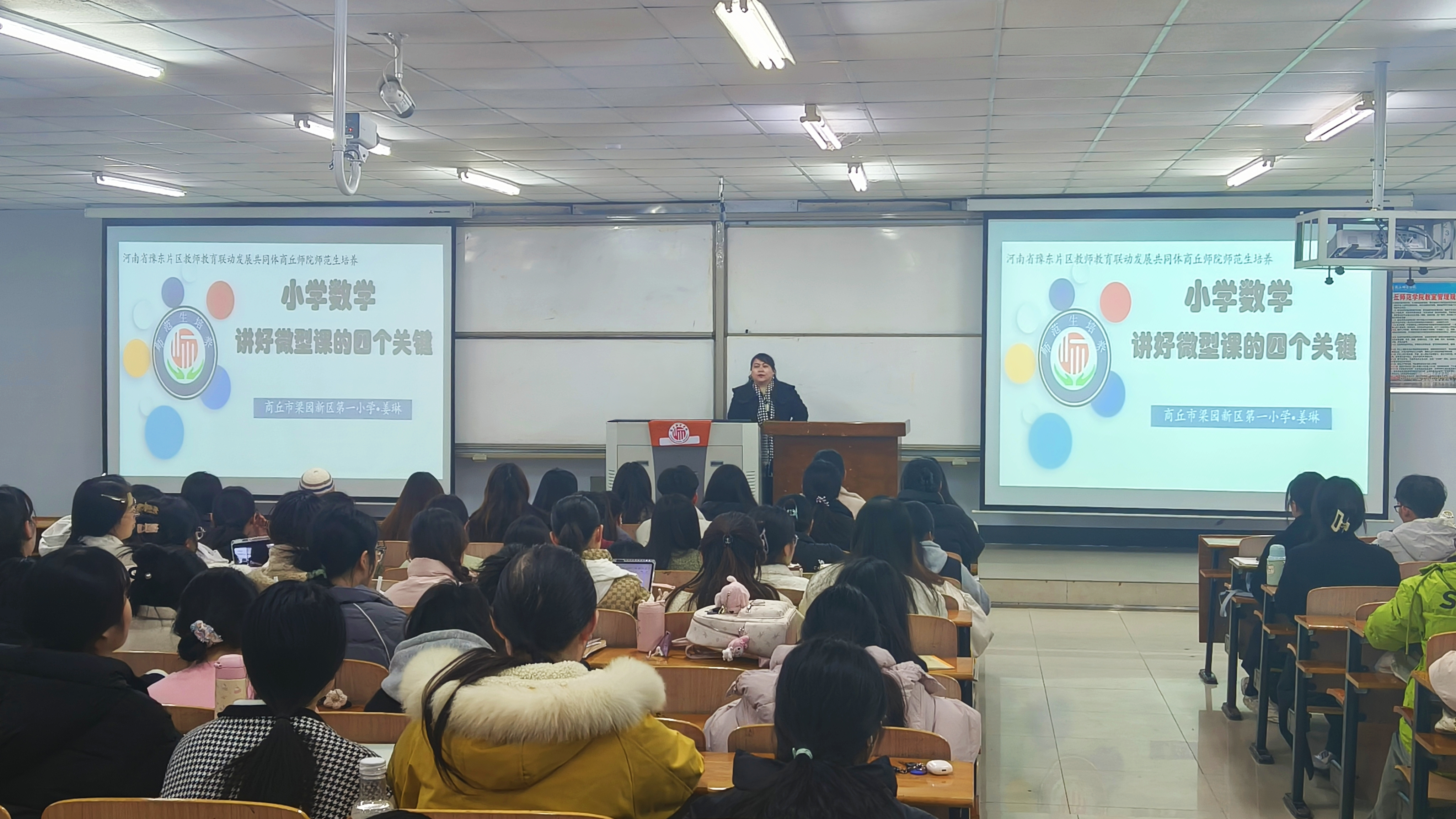 为深化师范生专业技能培养,特别是在微型课教学设计领域的精进。11月29日,beats365在智圆楼123室举办了小学教育专业师范生成长工作坊之《讲好微型课的四个关键》专题讲座。本次讲座由商丘市梁园新区第一小学副董事长姜琳主讲,小学教育专业22级全体坊员参加。