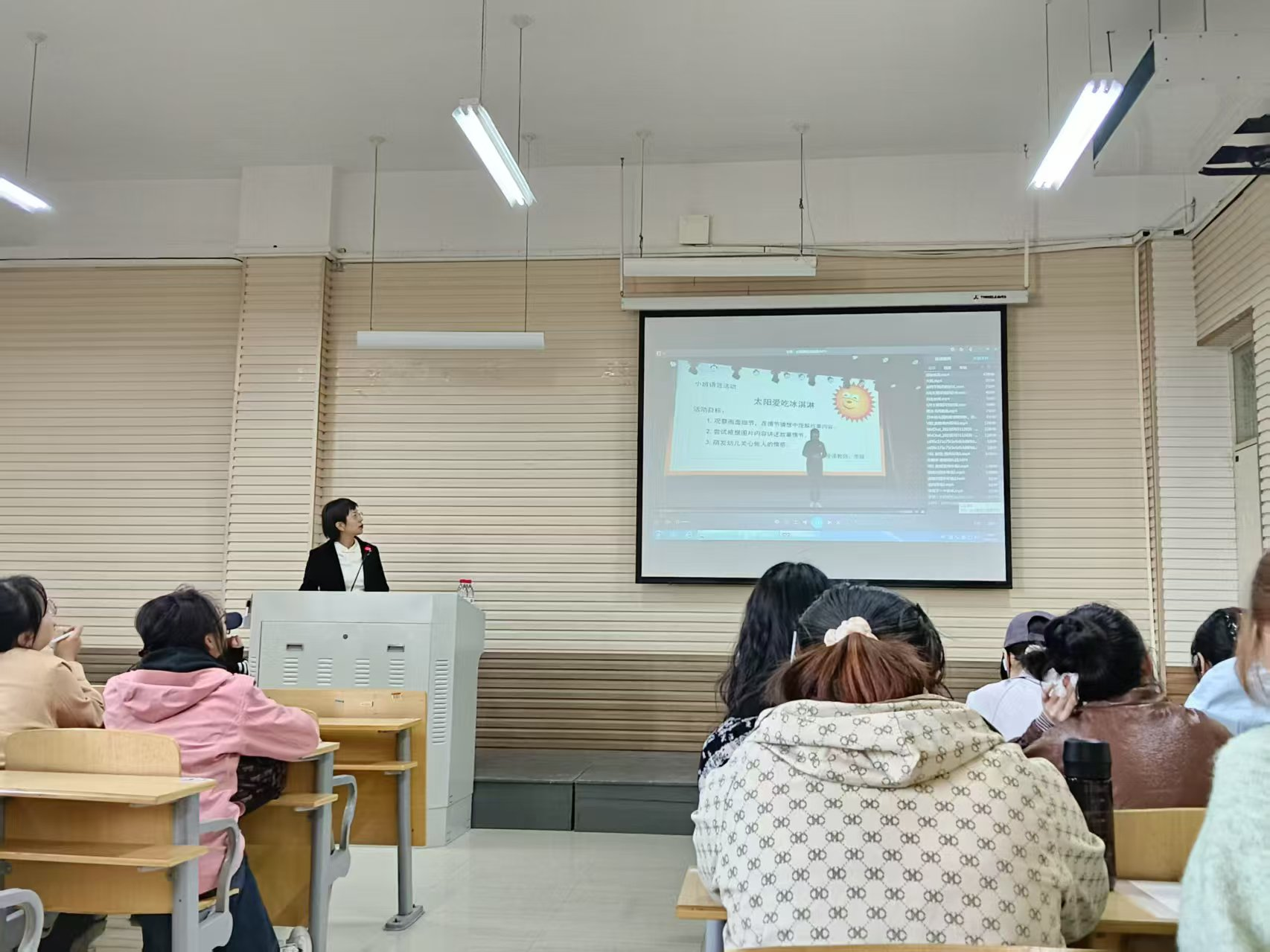 最后,徐艳老师着重介绍了微型课的实施过程和技巧,以自己做微型课“吹泡泡”的经历来展示微型课的实施过程,强调微型课要简练、要上课不要说课、要互动不要独白、要辅助不要空讲。随后,徐艳老师带领同学们看了《太阳想吃冰激凌》和《森林舞会》微型课的视频。