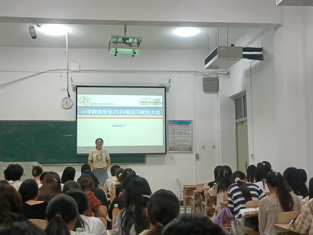 为保障见习活动顺利进行,5月17日,王丽主任组织召开见习动员大会,为全体师范生讲解见习方案,并对相关注意事项进行了特别强调。本次教育见习活动分为校外观摩和校内研讨两部分。